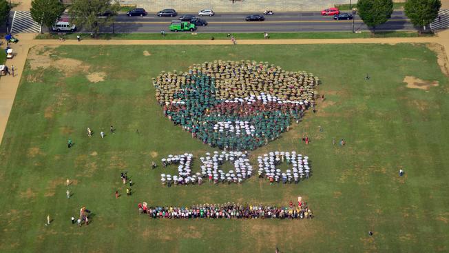 Emily Prince has constructed a graphical depiction of those who have died with many pieces of paper, color-coded to match the person's skin; all I could think was, "All of these people are dead."